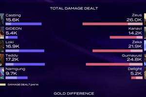 体育资讯4月1日讯 今日LCK第二赛段正式打响,首局BRO全面溃败不敌HLE,而比赛中GIDEON皇子伤害仅5.4K,比自家辅助妮蔻的伤害还要低!