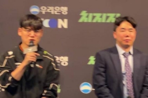 Gumayusi:选择这两个的话是因为用她们打出了不错的表现,选择芸阿娜的话是因为她皮肤不太多而女枪的话第五局的时候用这个角色打出了一些小亮点觉得很有意义。皮肤形式的话因为是第三个皮肤了,所以以比去年更漂亮做出考虑,考虑了很多种组合形式,然后拳头方面也在努力地准备,我很期待